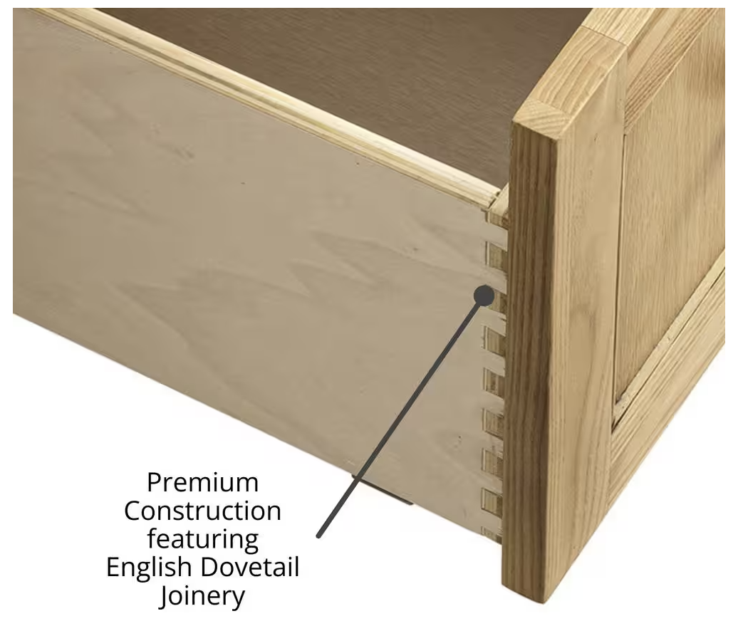 All James Martin cabinets have drawer boxes crafted with classic English dovetail joinery, providing stronger joints which has long been the hallmark of quality construction
